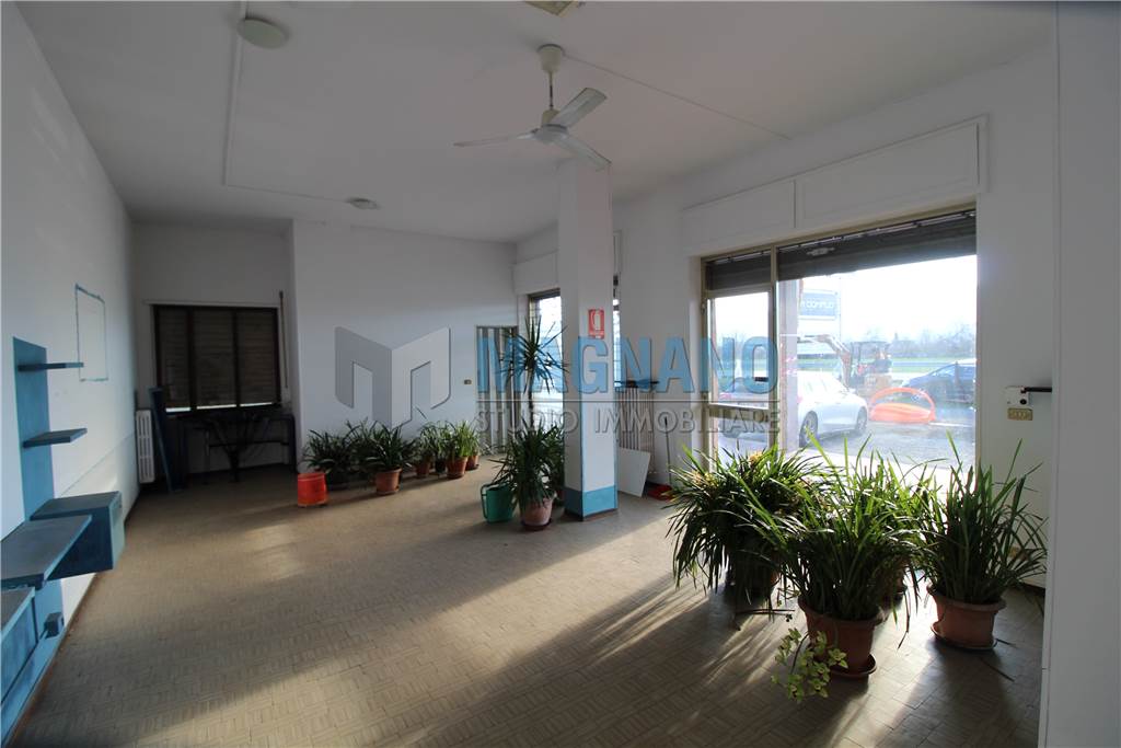 In palazzo con porticato, affacciato su strada statale ad alto passaggio veicolare giornaliero, proponiamo negozio con tre ampie vetrine su fronte strada. L’immobile è composto da un unico locale open space, retro e servizio. Ottima visibilità e ideale per attività commerciali, studi professionali o showroom.